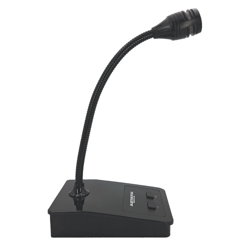 The Astatic GN14-HL is a dual impedance, omnidirectional dynamic desk microphone offering modern styling and features in a rugged housing for all industrial and commercial public address and paging applications. The GN14-HL has a slide switch for low or high impedance selection, and features a PTT button which can be locked for an “always on” mode, or lift-to-talk operation, which can be disabled via a slide switch located under the microphone base. The heavy-duty 14” gooseneck is flexible enough to be positioned exactly where it is needed, yet rugged enough to stay in place even in challenging environments. Supplied with unterminated 6.5’ (2m) four conductor cable with shield.