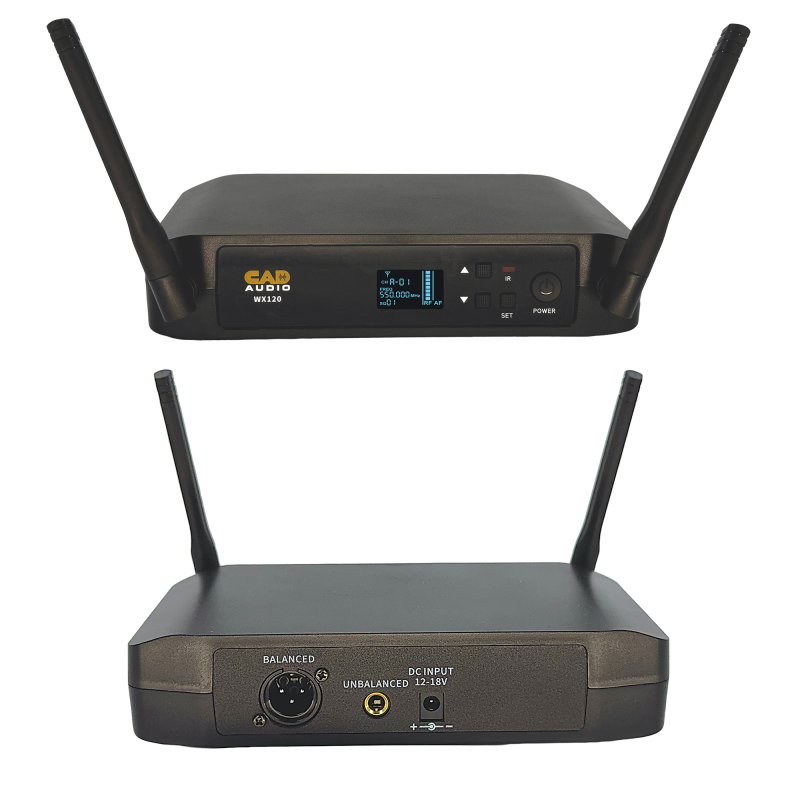 The CAD Audio WX120 is a value-packed wireless microphone all-in-one solution for musicians, presenters, educators, and worship leaders alike. Featuring up to 200’ (61m) of operating range and DQPSK digital audio transmission and 24 bit/48kHz quality, you are sure to get crisp clean sound no matter the application. The WX120 comes complete with both a handheld and a bodypack transmitter. Accessories for the bodypack transmitter included in the package are a lavalier microphone, a headworn microphone, and an instrument cable.